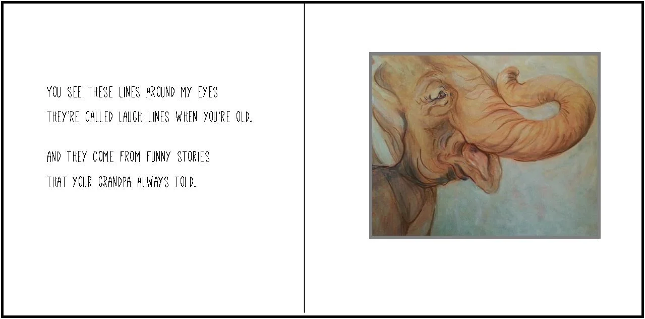 Nana elephant's lines become much more than just wrinkles as she shares their story with her grandchild in this small book about life, love and the dignity of aging gracefully.